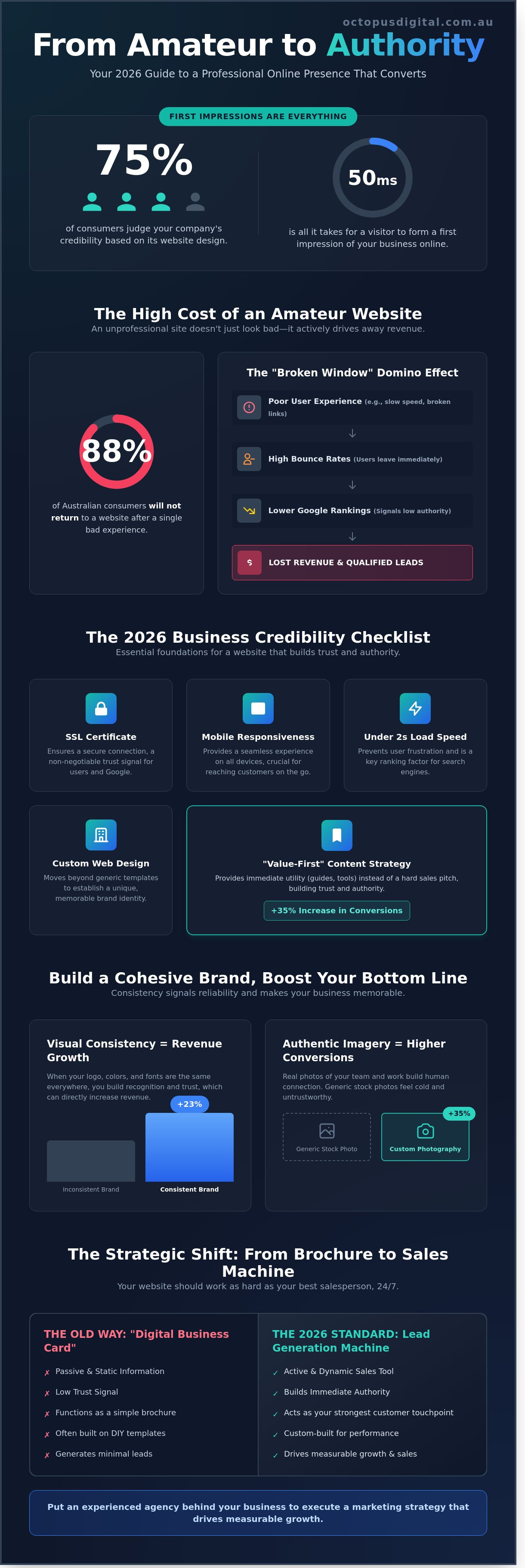 What if your website is actually driving your best Australian customers straight into the arms of your competitors? Recent data shows that 75% of consumers judge a company's credibility based on its digital design before they ever read a single review. You know your services are top-tier, but if your online presence feels dated, you're likely losing qualified leads to businesses that simply look more "modern." It's a common struggle for local business owners who want to know how to make my business look professional online without getting lost in technical jargon or wasting hours on multiple digital channels.